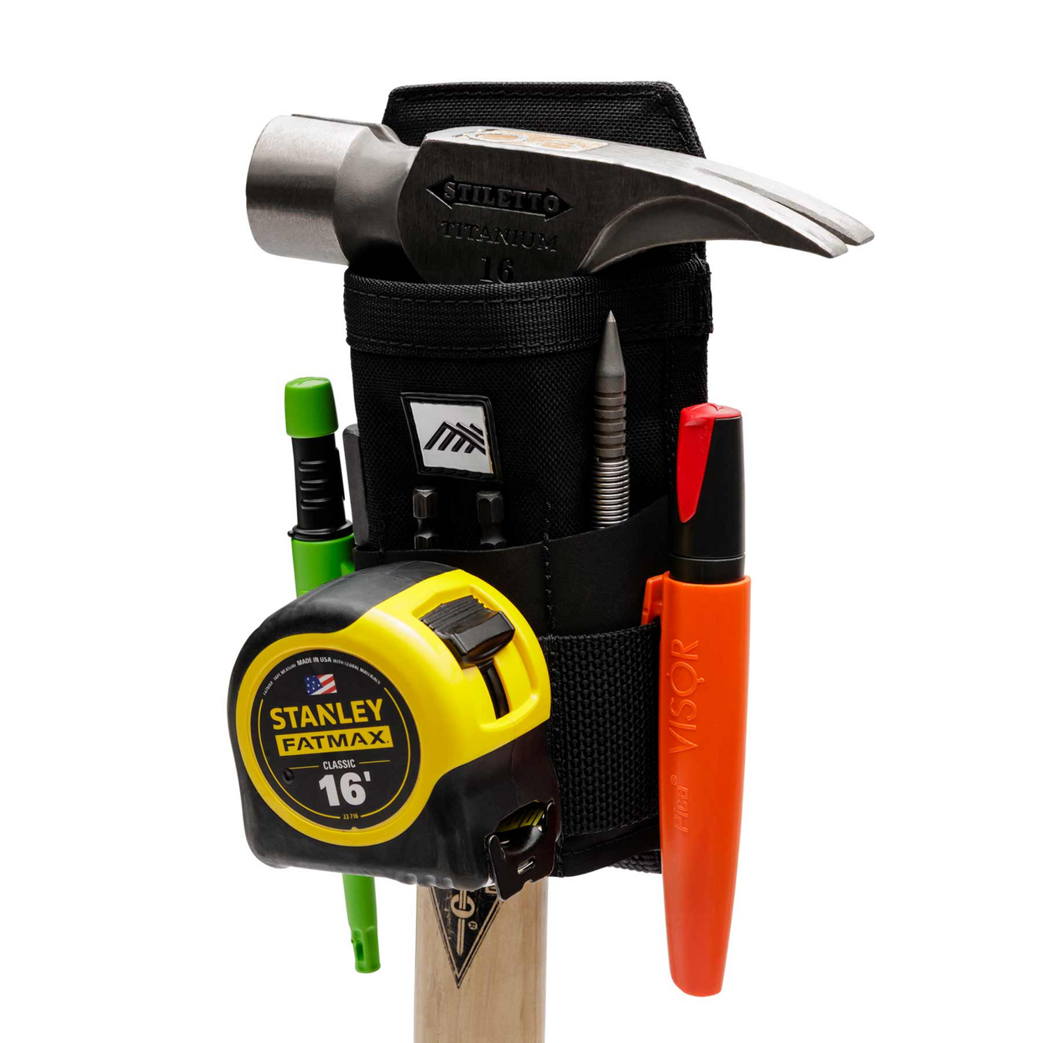 The outer features three slots for pencils, markers, bits or punches, as well as a stiff webbing strip for clipping on additional accessories like Utility Sheaths or Universal Magnet Clip.