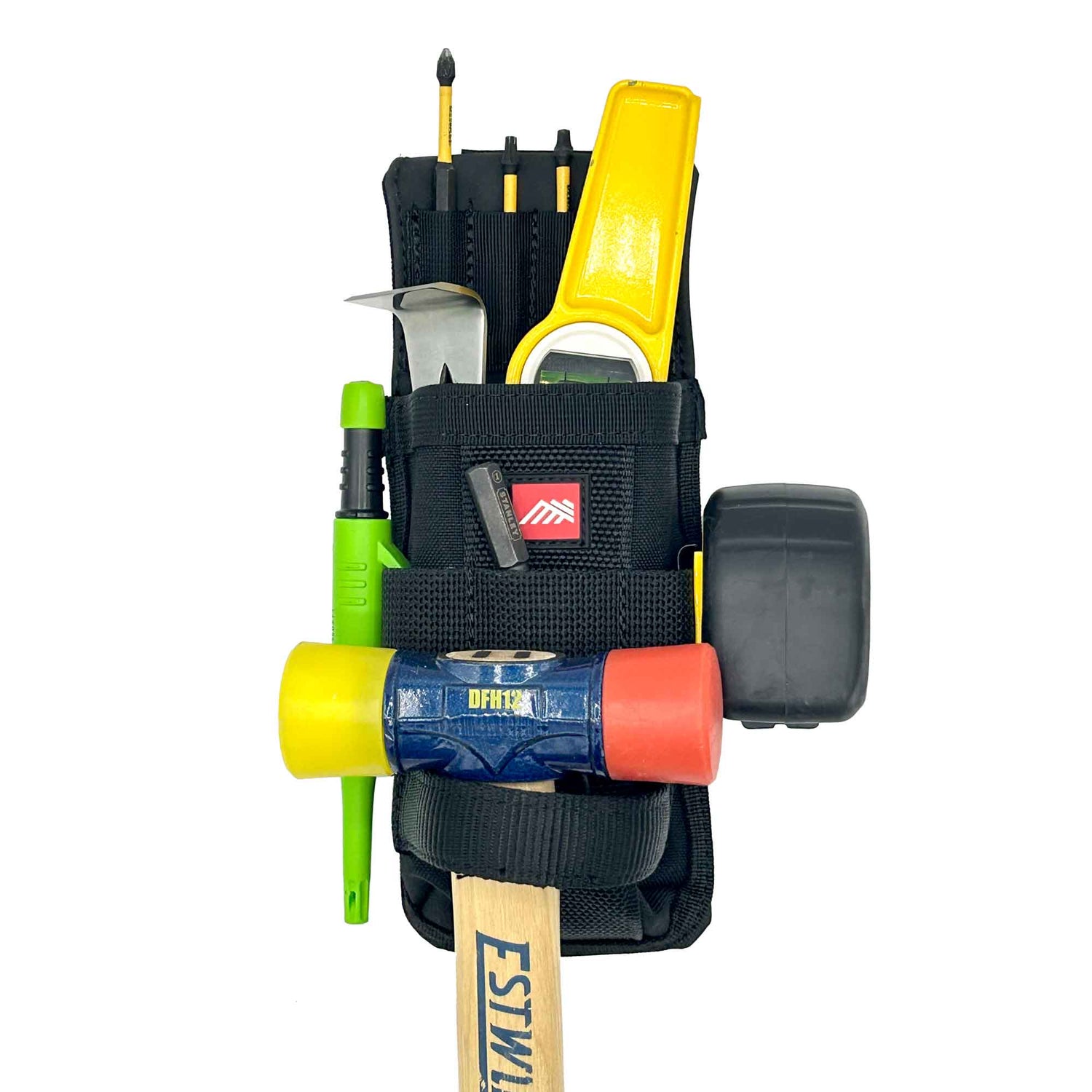 This extremely compact pouch is designed to carry the essentials. The single pocket is reinforced with an abrasion and scratch resistant Hypalon interior. The reinforced tool loop with hold your hammer and not scratch finished surfaces. We add a 4-slot bit index and stiff webbing for attaching tape or marker for good measure.